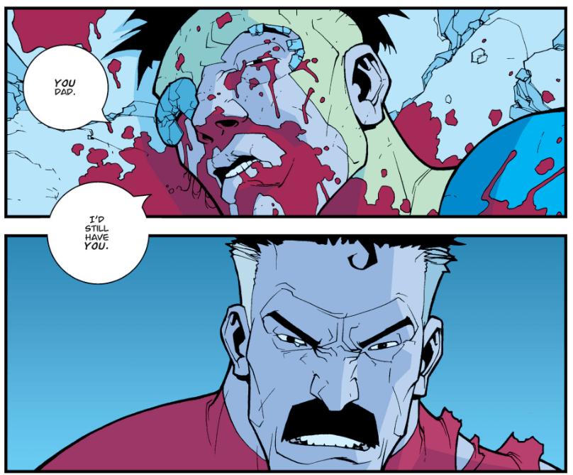Enraged by the attack on his family, Invincible ended up beating Angstrom to death (or so he thought). This was a pivotal moment in Mark’s development as a character and it was the first time he killed anyone.